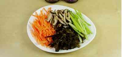 | Mộc nhĩ ngâm nước ấm cho nở mềm. Nấm rửa nhẹ nhàng dưới vòi nước cho sạch. Cà rốt gọt vỏ. Sau khi sơ chế xong nguyên liệu thì đem thái chỉ. Cần tây bỏ rễ, lá, rửa sạch và cắt khúc có độ dài tương ứng. |